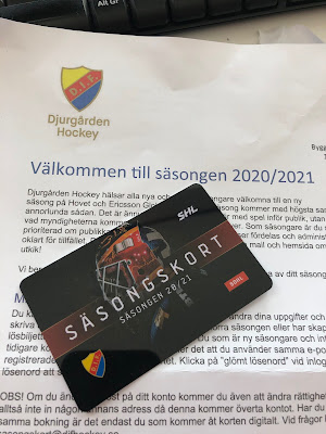I dag damp mitt säsongskort för hockeysäsongen 20/21 och det kommer att bli spännande att se hur det blir med publik. Som tur är vi säsongare prioriterade att få gå på matcherna ifall publikkapaciteten begränsas (vilken den säkert blir). Kommer att bli lite annorlunda ifall det ska vara 1,5 meter mellan varje åskådare, inga målkramar, high five. Det är inte hela världen ifall det blir lite annorlunda, det viktigaste är att vi håller oss friska och inte smittar andra.